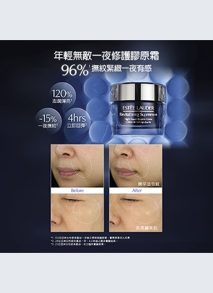 採用獨家「膠原力雙修護8科技」,激升並鎖住肌膚珍貴膠原力,顯著提升肌膚彈性和緊緻度,整晚源源為肌膚注入水分,深層滋潤,肌膚變得超彈嫩,同時幫助減淡臉部細紋及頸紋。